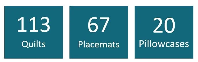 Quilters are always giving time, love, and of course quilts, to others. This page is dedicated to showing a small portion of what our members do for our community and ways for others to also get involved. The below numbers are our YTD donations as of Oct 1st.